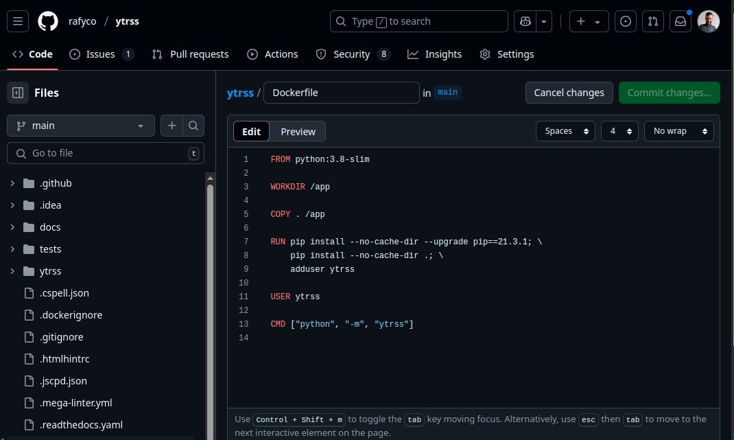 Edytor wbudowany w github jest prosty, ale spełnia swoje zadanie.