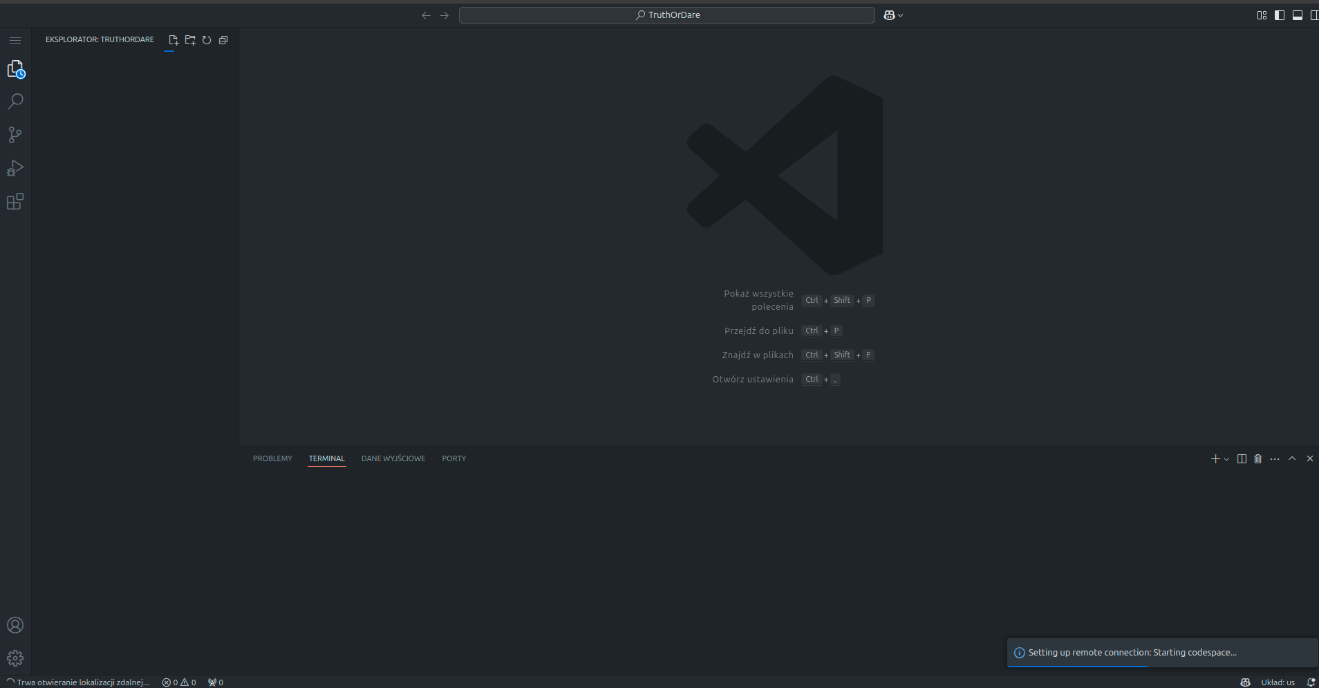 W Codespace możemy nie tylko edytować kod, ale także go uruchamiać. To ustawienie jest przydatne szczególnie dla projektów webowych, lub serwerów, które są uruchamiane na konkretnym porcie. Środowisko pozwala na udostępnienie tego portu przez przeglądarkę i otwarcie wyników swojej pracy na specjalnie do tego celu wygenerowanej stronie.