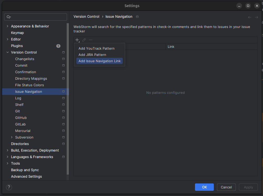 - https://www.jetbrains.com/help/webstorm/2024.3/handling-issues.html?reference.settings.vcs.issue.navigation.add.link=&keymap=XWin - poradnik ze strony producenta.