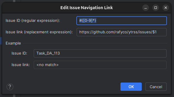 </project> Nasza reguła zdefiniowana jest w znaczniku <IssueNavigationLink>. Można się pokusić o własnoręczne napisanie tych reguł,